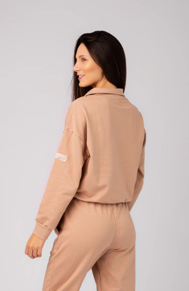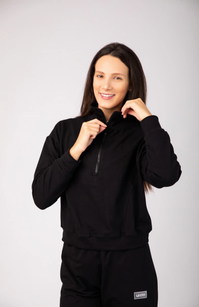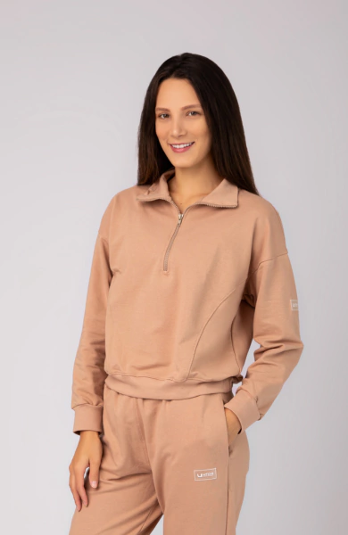 Com gola média e meio zíper, o modelo permite ajuste térmico e um visual esportivo e moderno. Os recortes estratégicos afinam a cintura e valorizam a silhueta, enquanto a manga levemente caída garante um caimento despojado e confortável. Os punhos e barra em ribana finalizam a peça com elegância e garantem melhor ajuste ao corpo.
