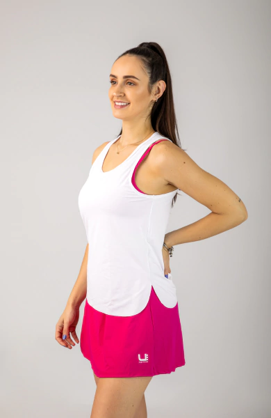 Sua modelagem mais ajustada e confortável permite total liberdade de movimentos, enquanto o tecido com proteção UV50+ mantém a pele protegida dos raios solares, tornando-a perfeita para treinos ao sol.