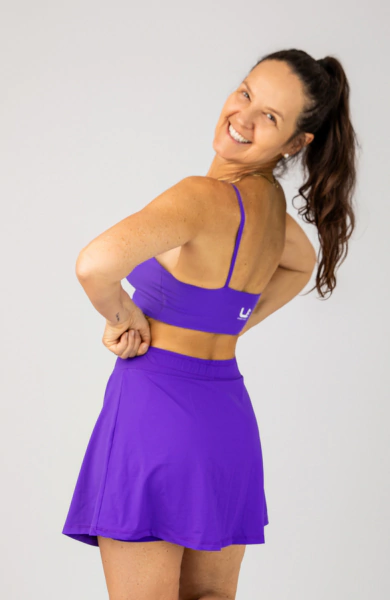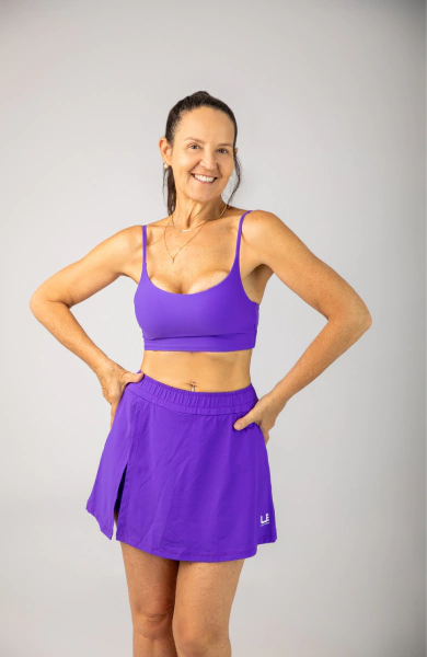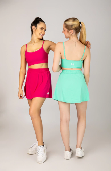 Este modelo apresenta dois shorts internos com bolsos, um que é ideal para guardar pequenos itens com praticidade, e outro que tem abertura para guardar a bolinha durante as partidas. Enquanto a saia sobreposta possui uma abertura frontal, conferindo um design moderno. O cós de elástico valoriza a cintura, proporcionando ajuste confortável e suporte extra.